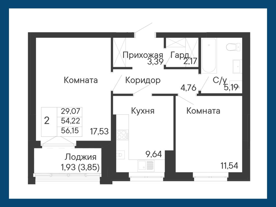 2-комнатная — 56,15 м² 1/8 эт. в Ривьера