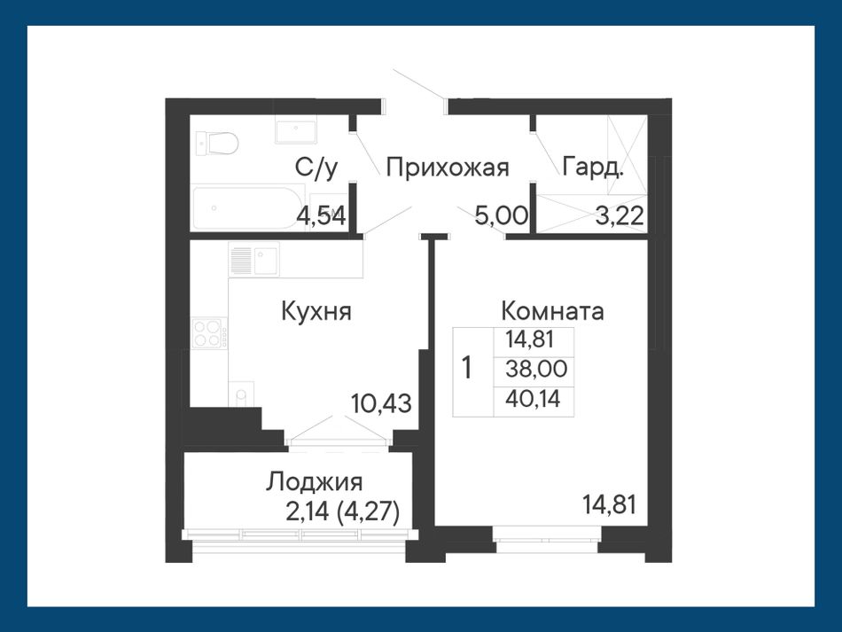 1-комнатная — 40,14 м² 6/8 эт. в Ривьера