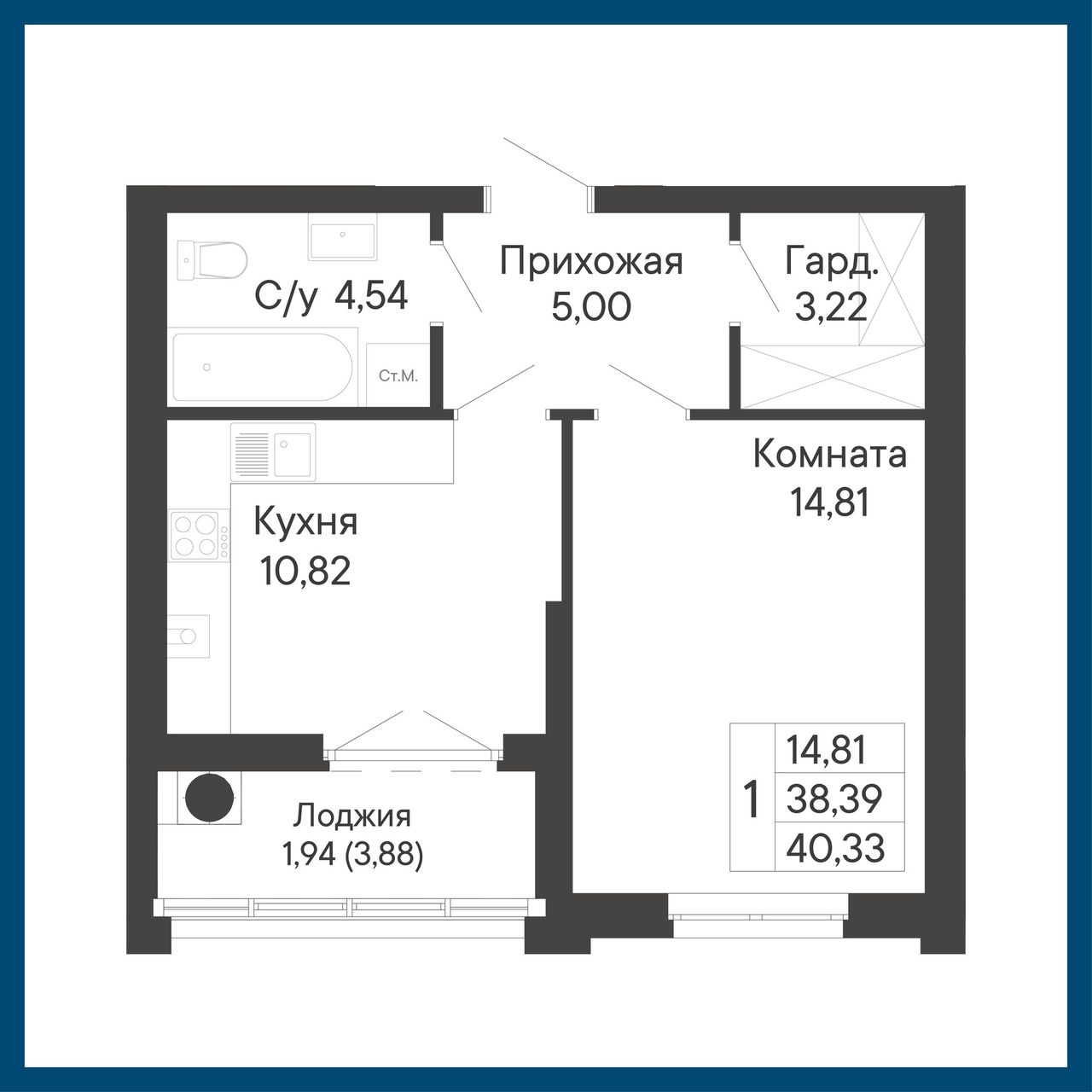 1-комнатная — 40,33 м² 8/8 эт. в Ривьера