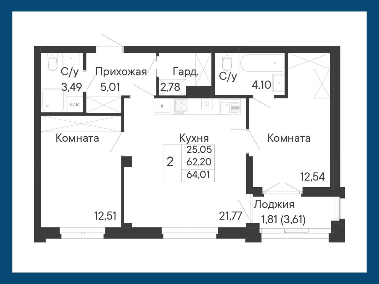 Общая площадь64,01 м²
