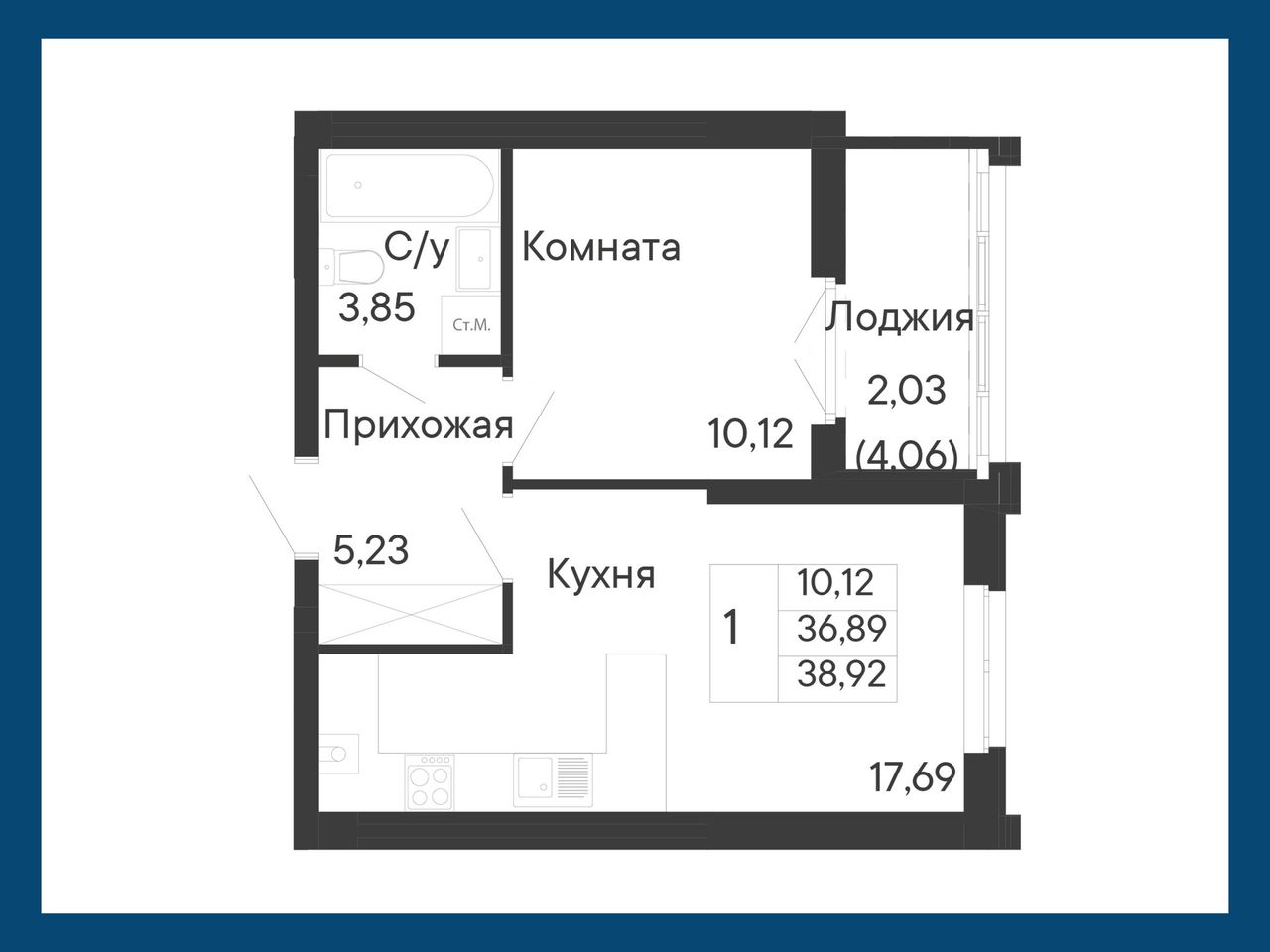 1-комнатная — 38,92 м² 4/8 эт. в Ривьера