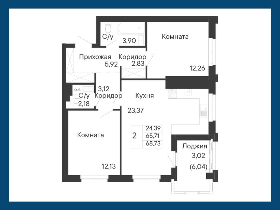 Общая площадь68,73 м²