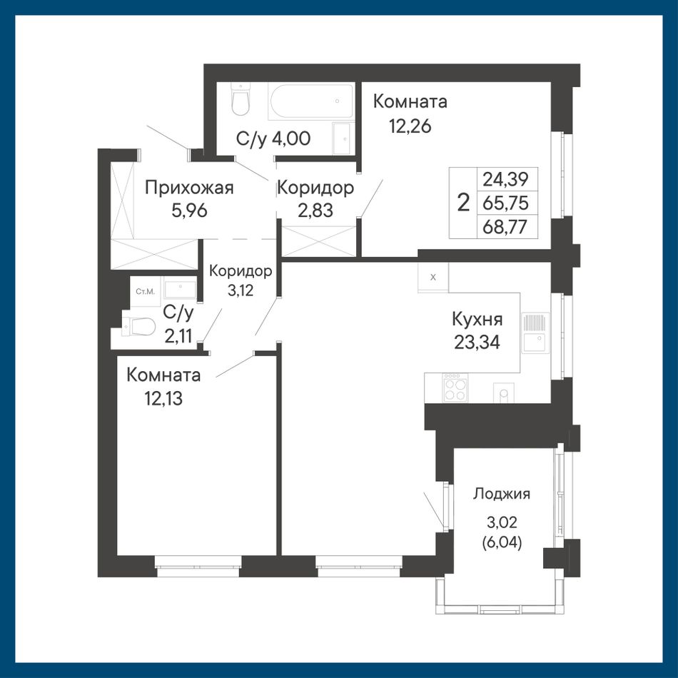 Общая площадь68,77 м²