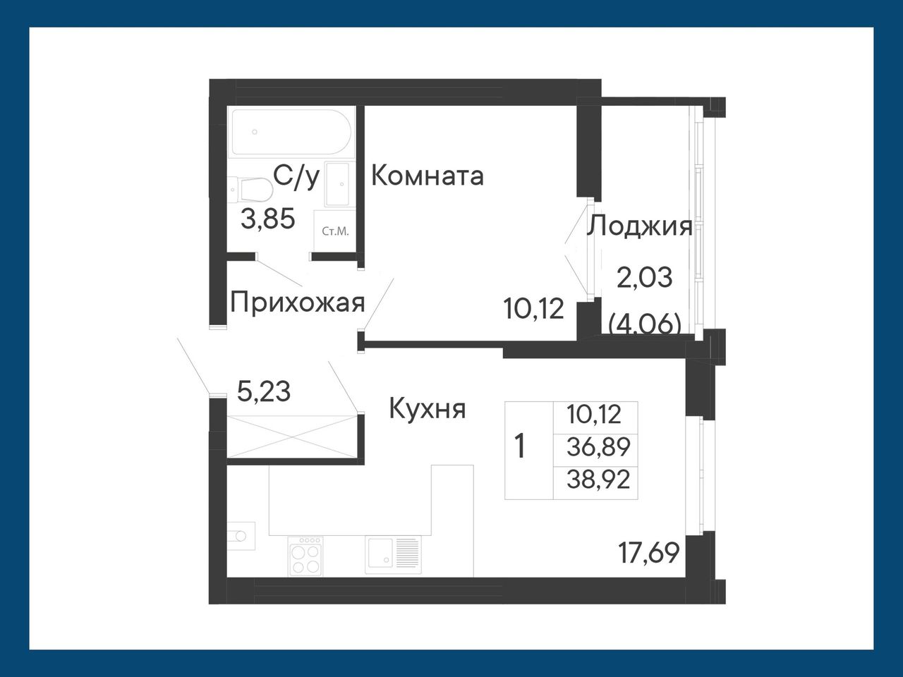 1-комнатная — 38,92 м² 8/8 эт. в Ривьера