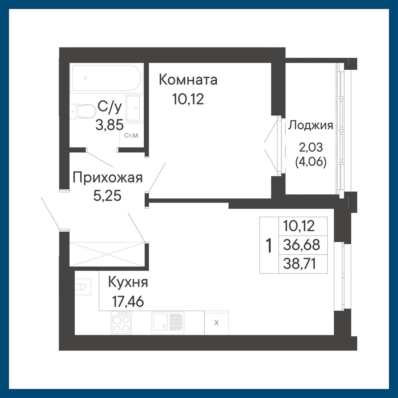 Общая площадь38,71 м²