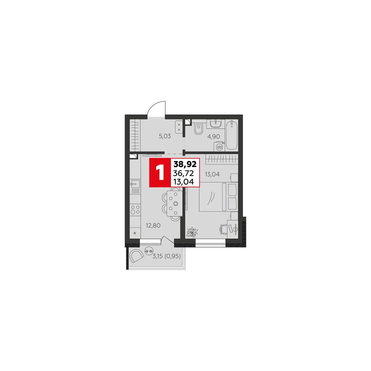 Общая площадь36,72 м²