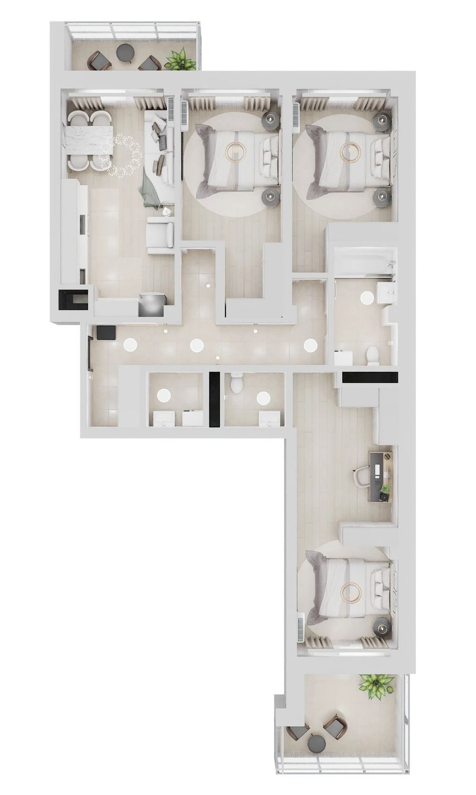 — 3 просторные спальни