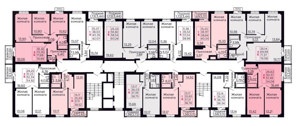 | 2-комн. | 60 - 71 м² | 14,5 - 17,3 млн ₽ |