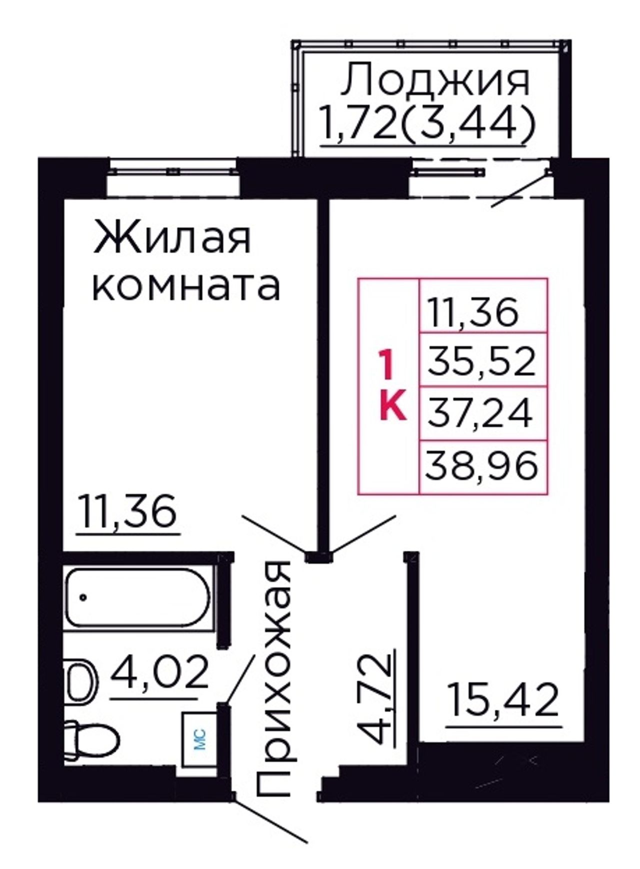 Общая площадь37,24 м²