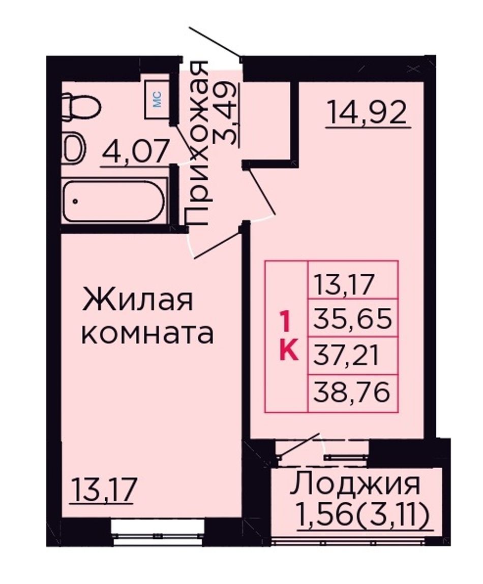 Общая площадь37,21 м²