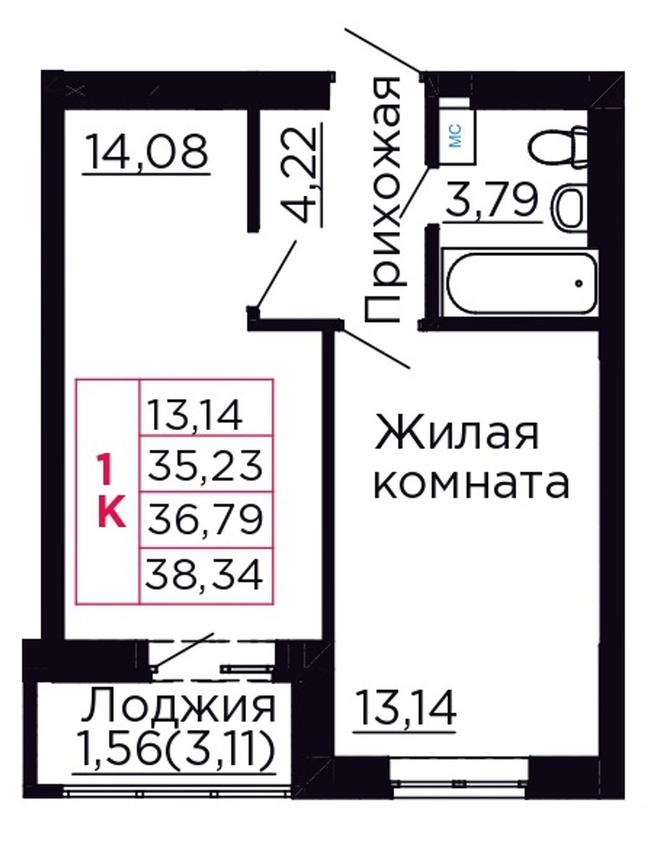 Общая площадь36,79 м²