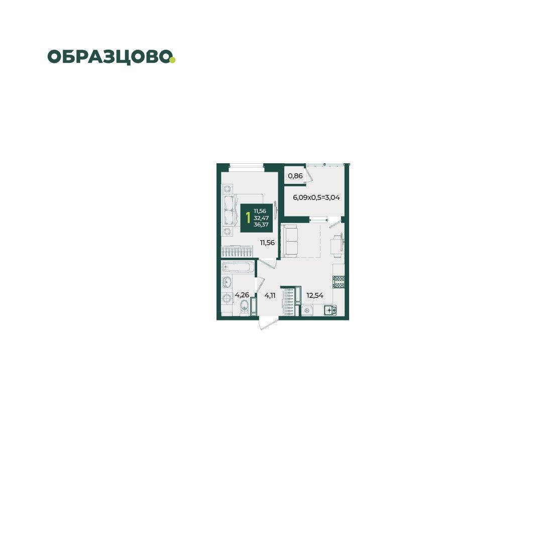Общая площадь36,37 м²