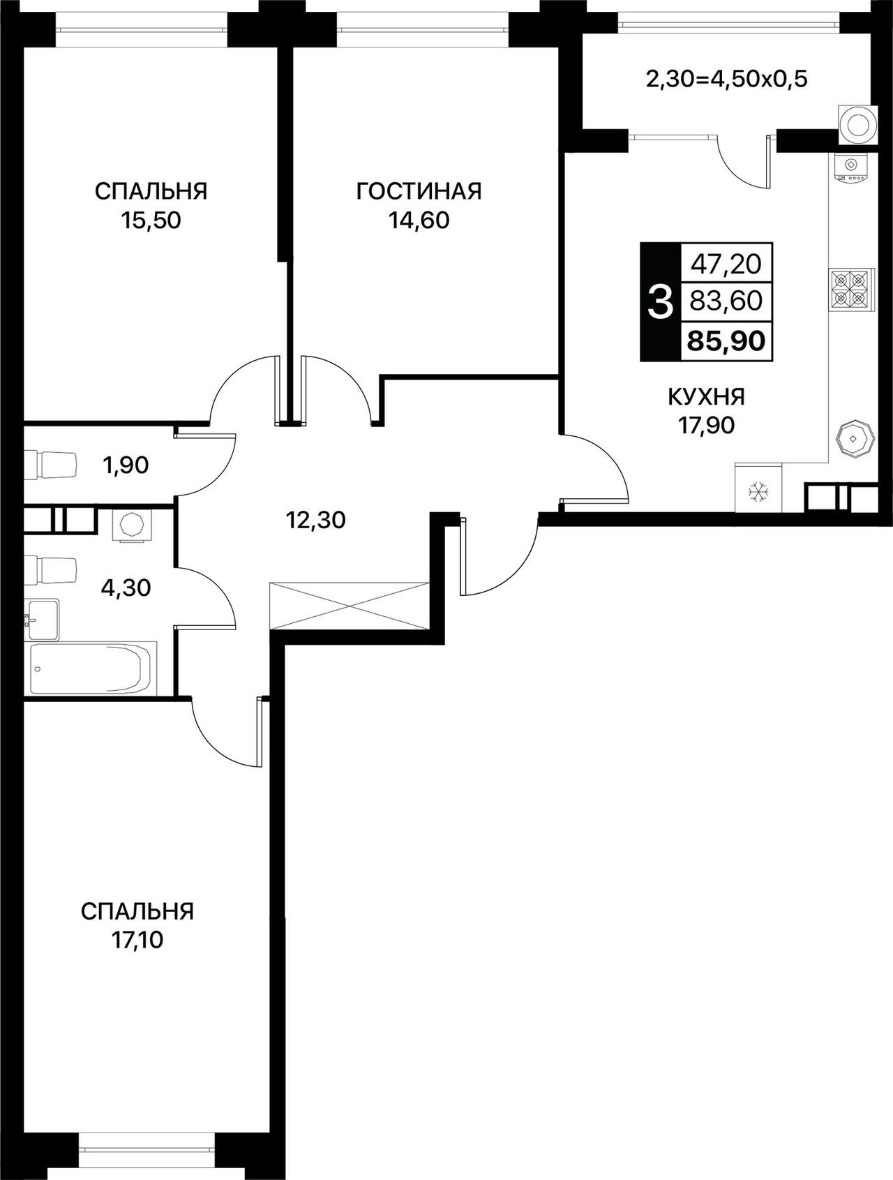 Общая площадь85,9 м²