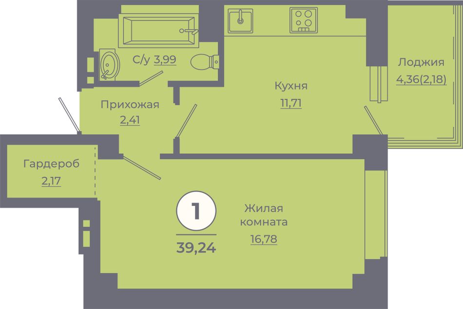 1-комнатная — 39,24 м² 3/24 эт. в Сокольники