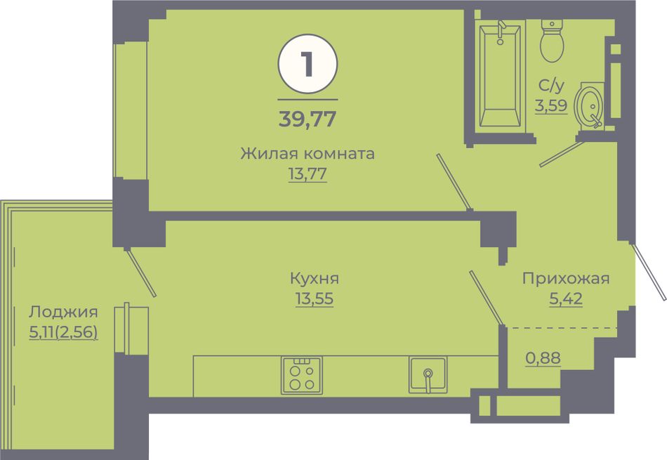 Общая площадь39,79 м²