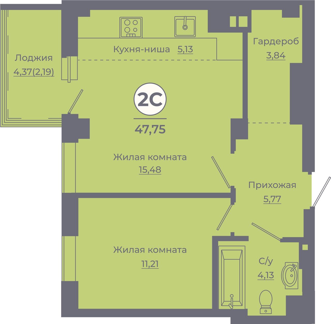 2-комнатная — 47,18 м² 18/24 эт. в Сокольники