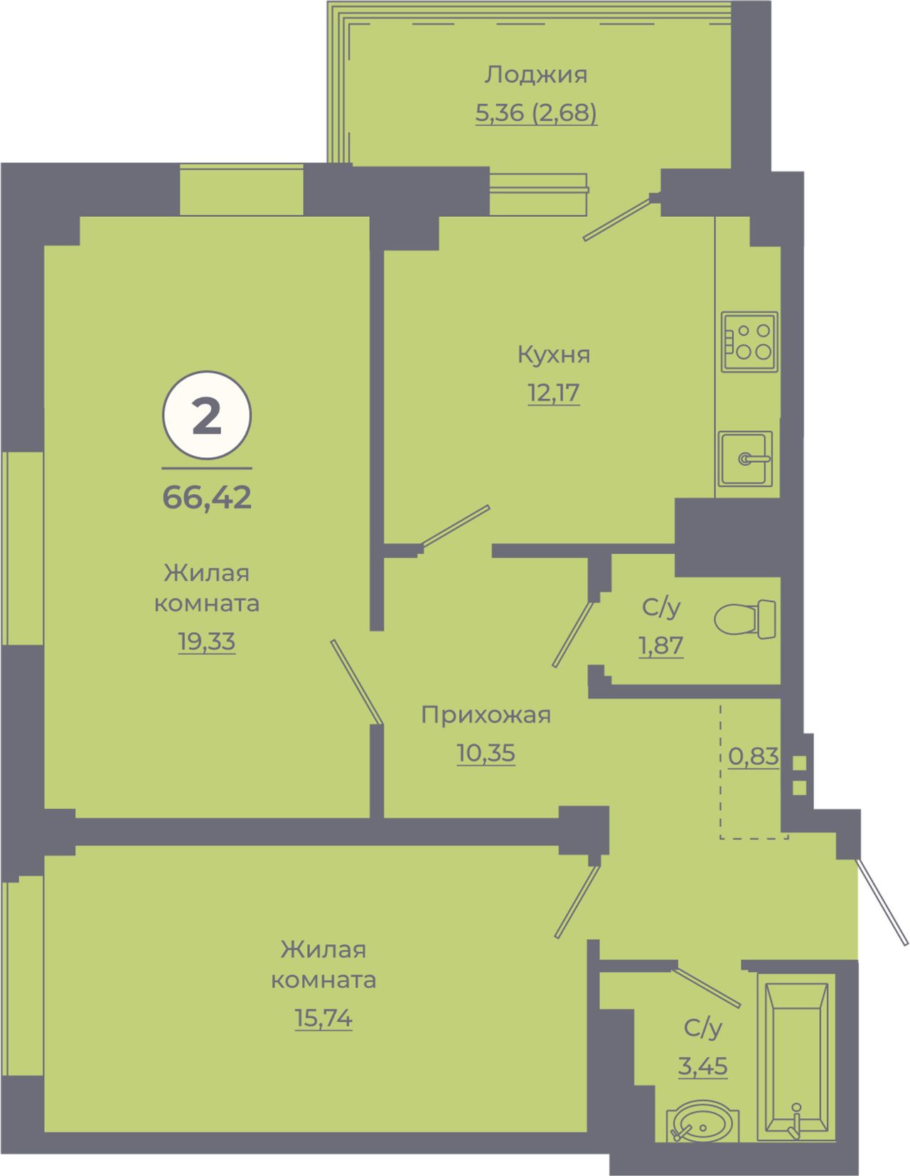 2-комнатная — 65,7 м² 20/24 эт. в Сокольники