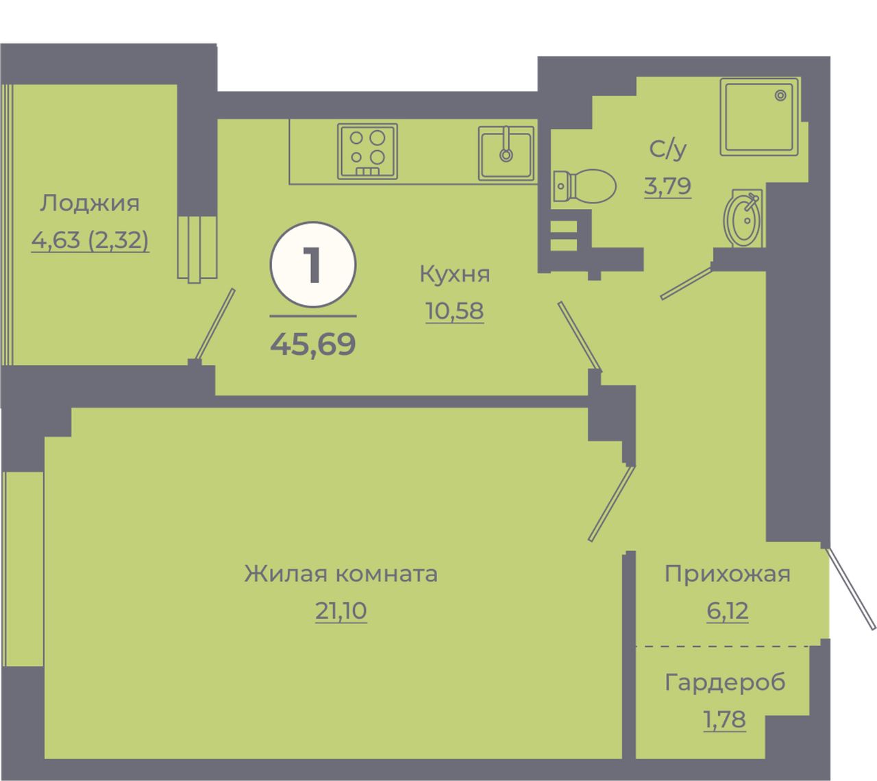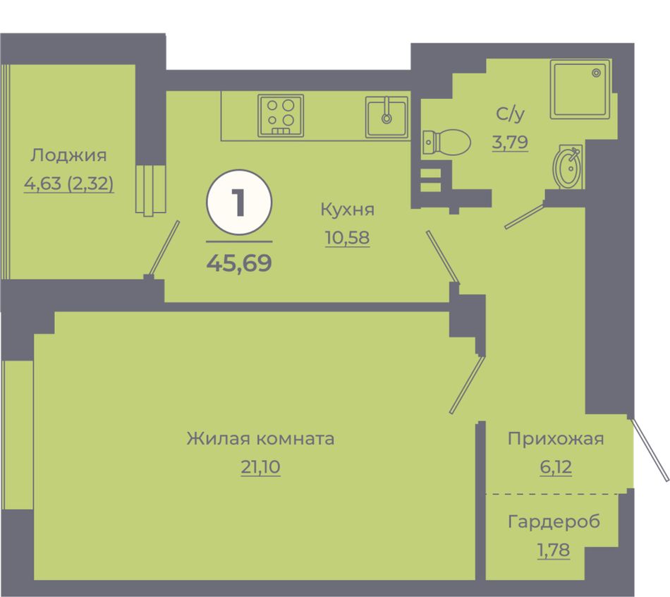 Жилая площадь21,1 м²