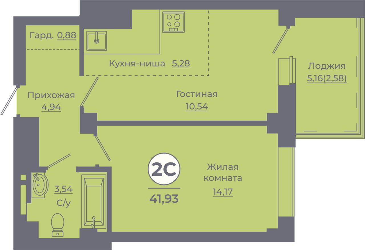 Общая площадь41,24 м²
