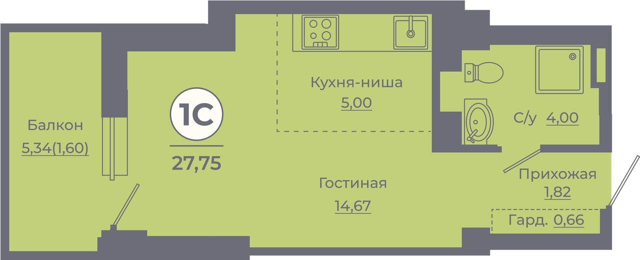 Студия — 27,25 м² 24/24 эт. в Сокольники