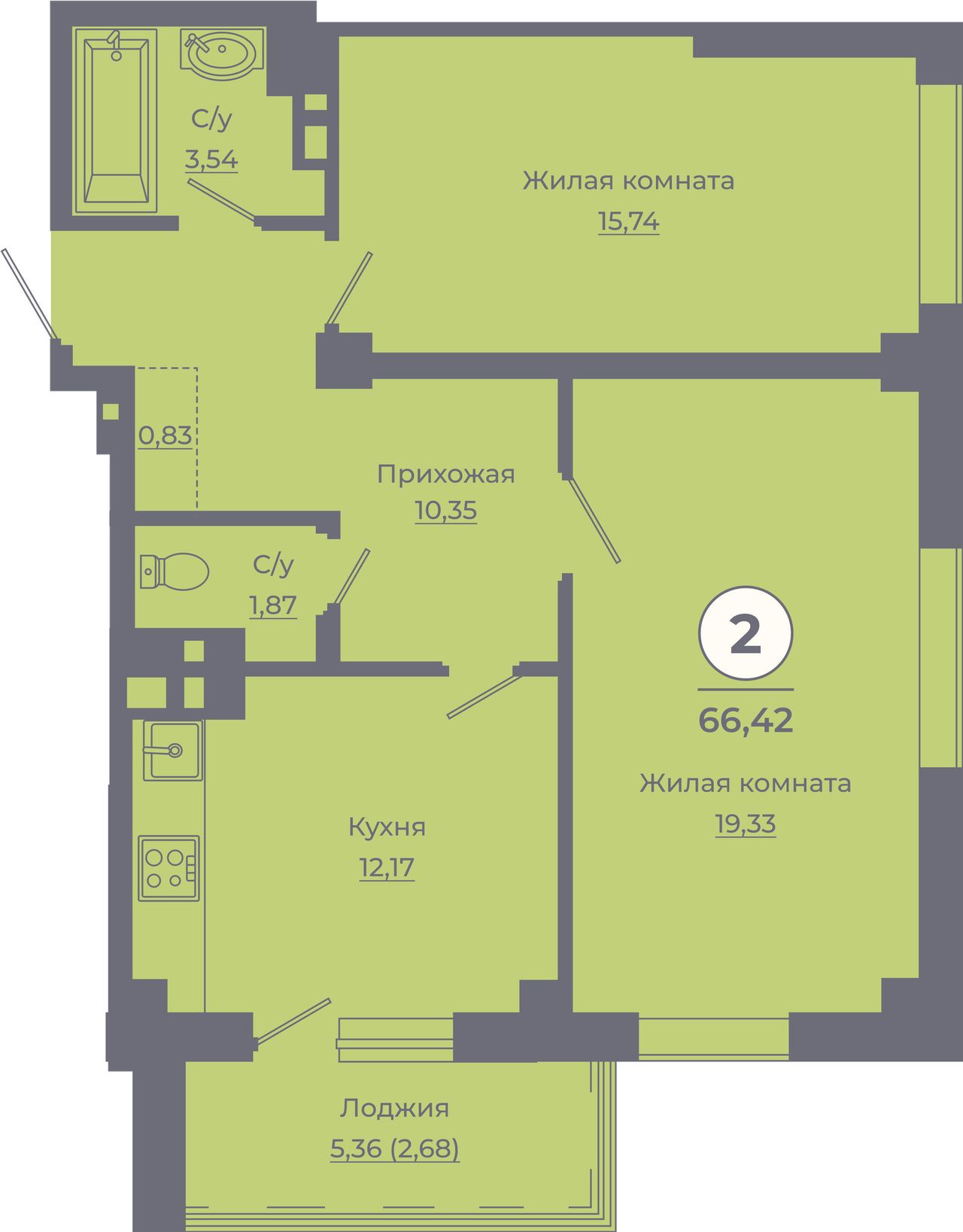 2-комнатная — 65,95 м² 11/24 эт. в Сокольники