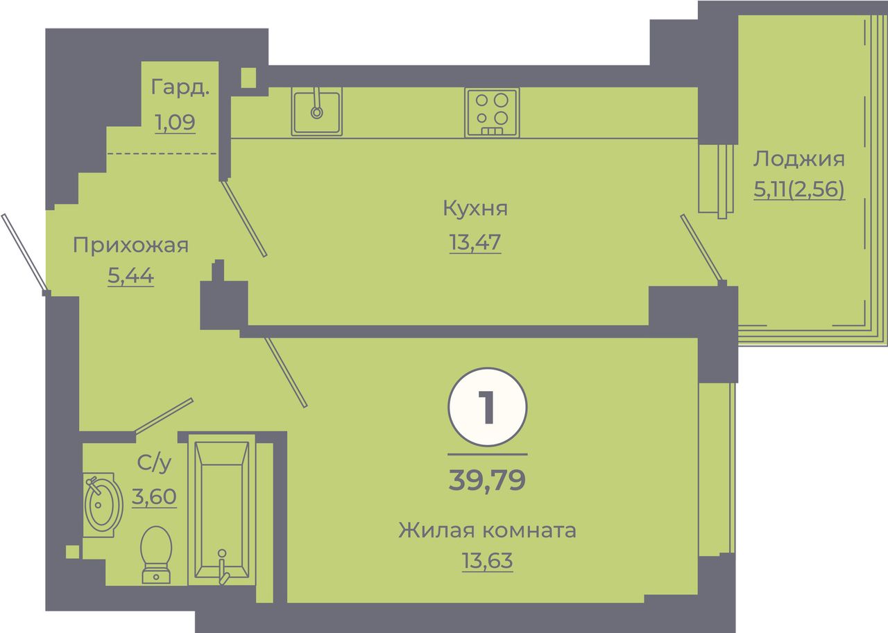 1-комн. | 39 - 40 м² | 4,5 - 5,1 млн ₽ |