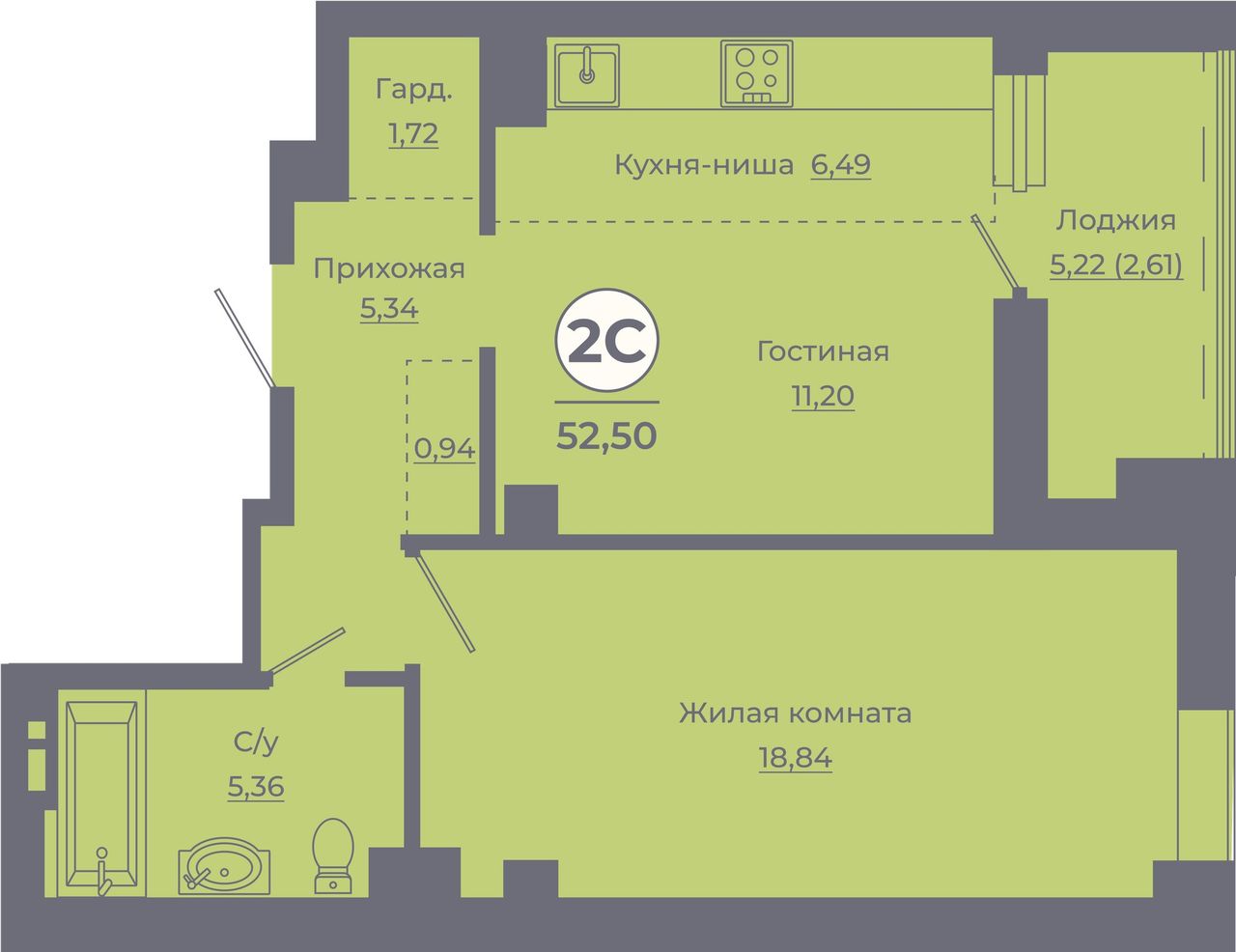 2-комнатная — 51,97 м² 16/24 эт. в Сокольники