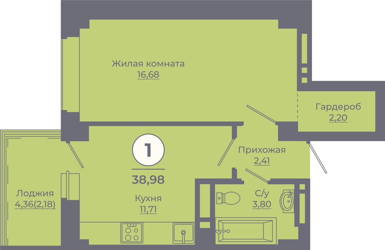 1-комнатная — 38,79 м² 19/24 эт. в Сокольники