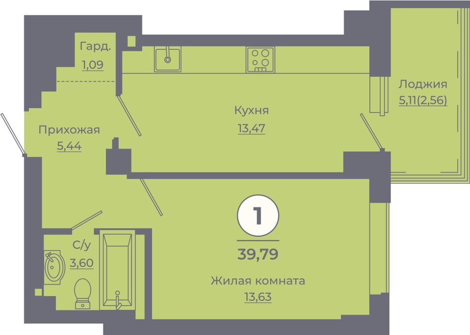 | 1-комн. | 39 м² | 4,7 - 5,2 млн ₽ |