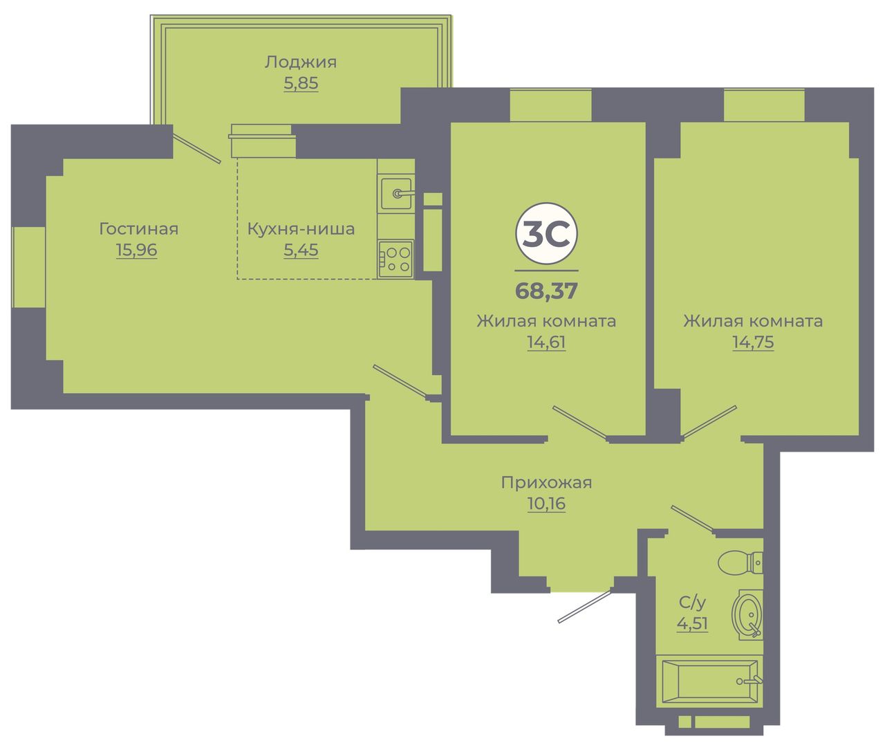 3-комнатная — 68,52 м² 2/24 эт. в Сокольники