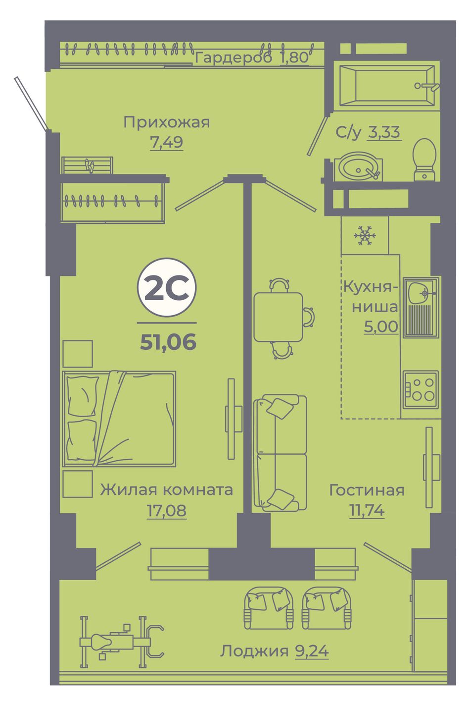 2-комнатная — 51,08 м² 7/24 эт. в Сокольники