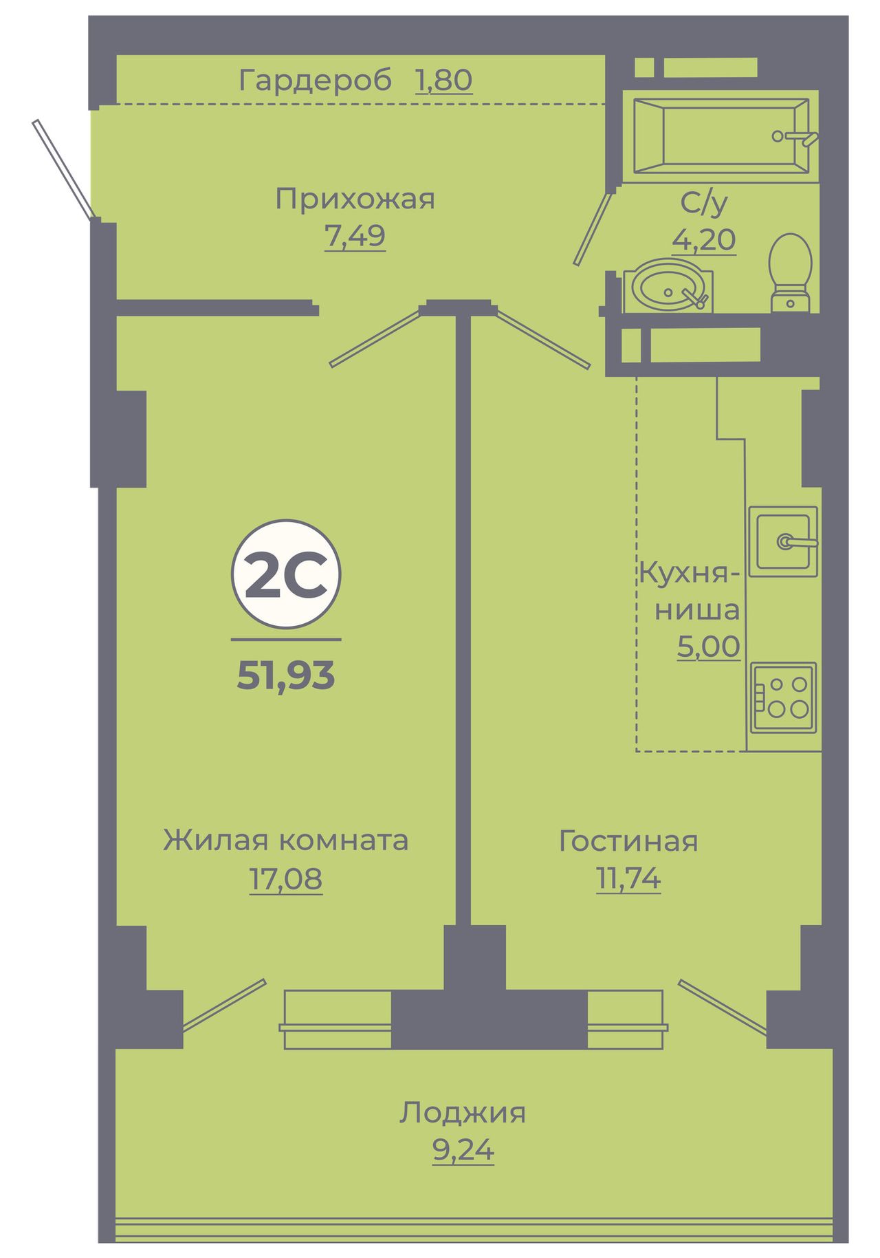 2-комнатная — 51,03 м² 18/24 эт. в Сокольники