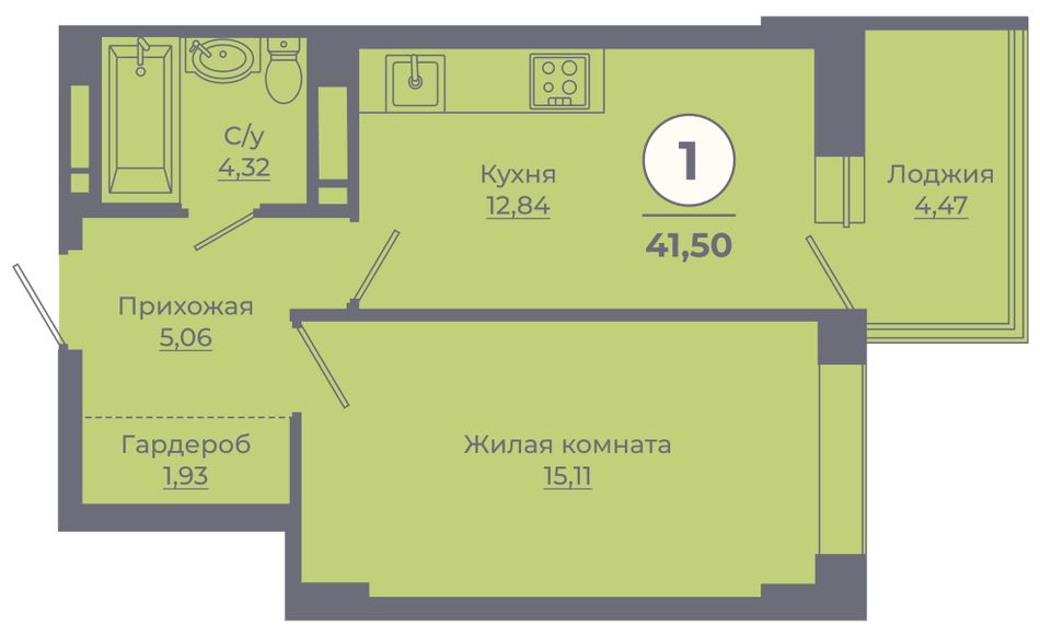 1-комнатная — 40,83 м² 19/24 эт. в Сокольники