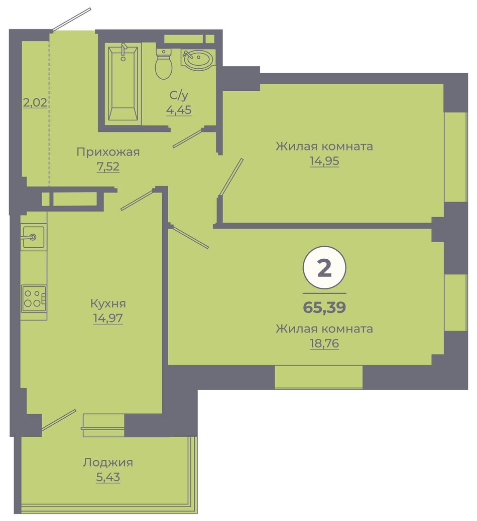 2-комнатная — 64,84 м² 21/24 эт. в Сокольники