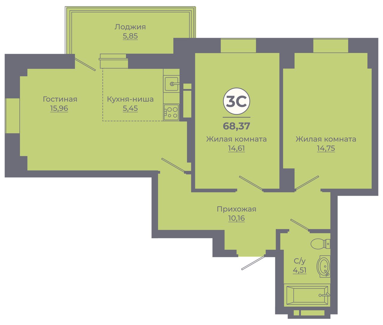 3-комнатная — 67,84 м² 24/24 эт. в Сокольники