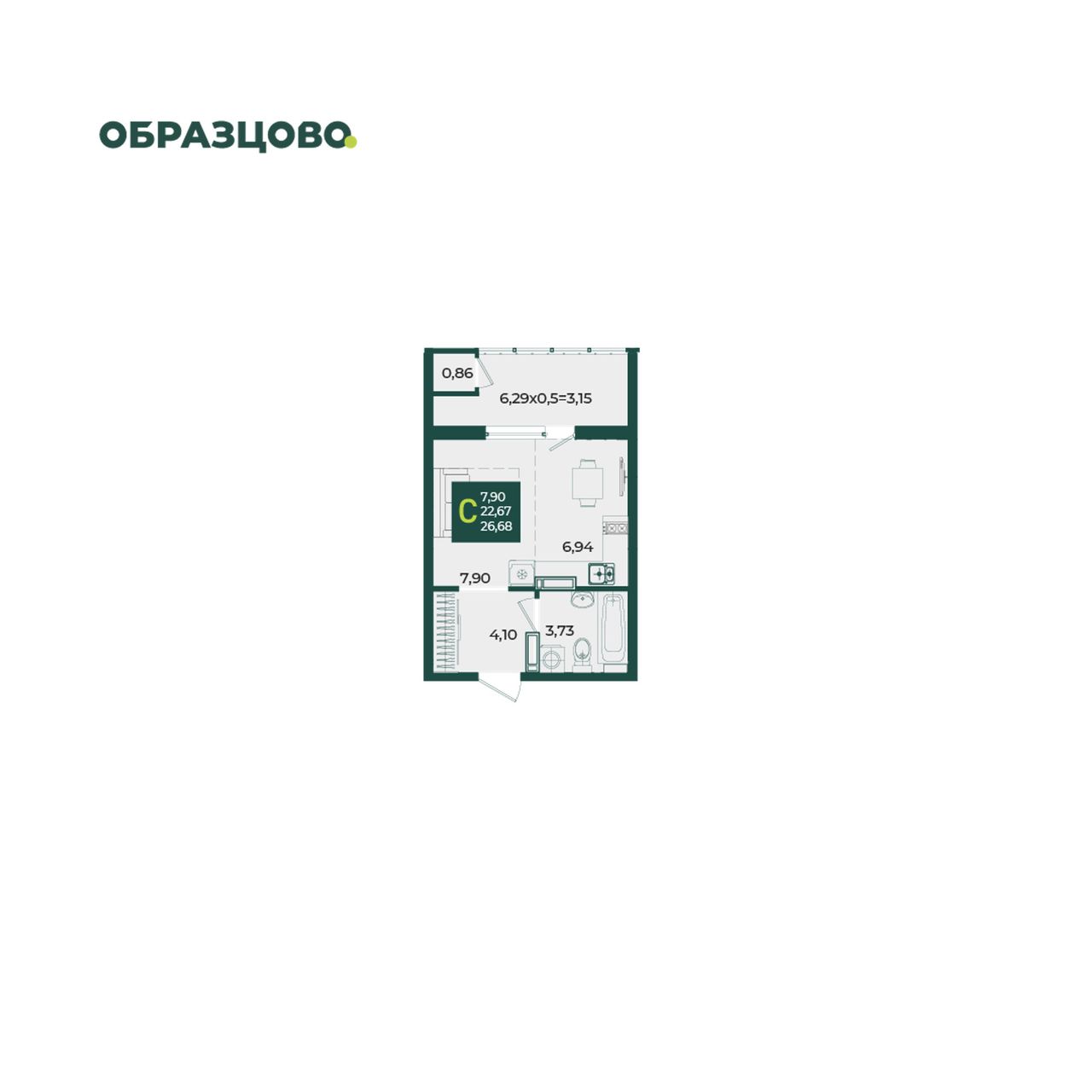 Студия — 26,68 м² 14/18 эт. в Образцово