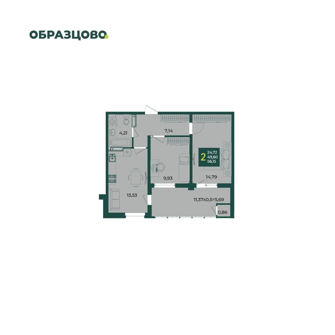 Общая площадь56,15 м²
