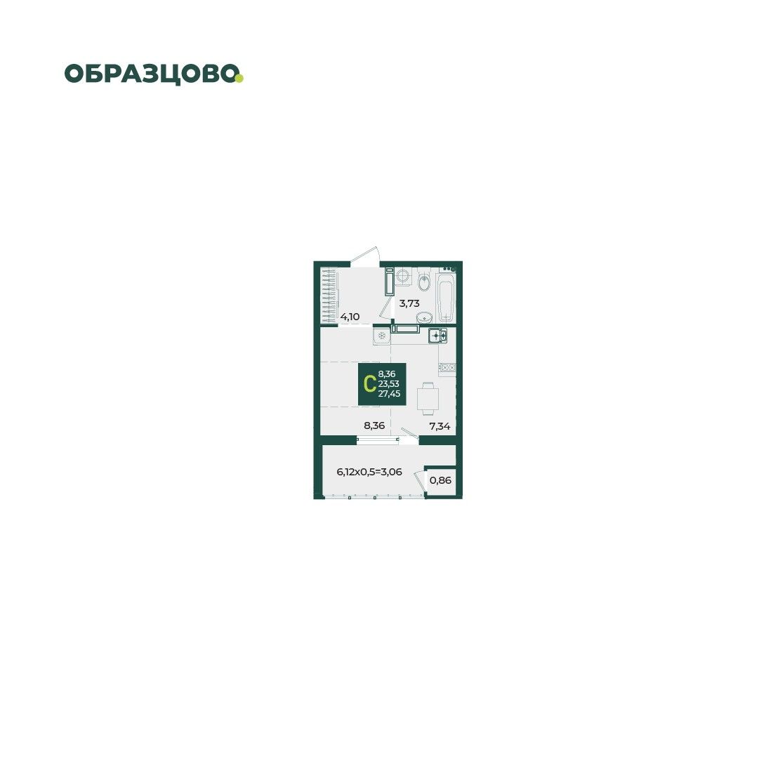 Студия — 27,45 м² 9/18 эт. в Образцово