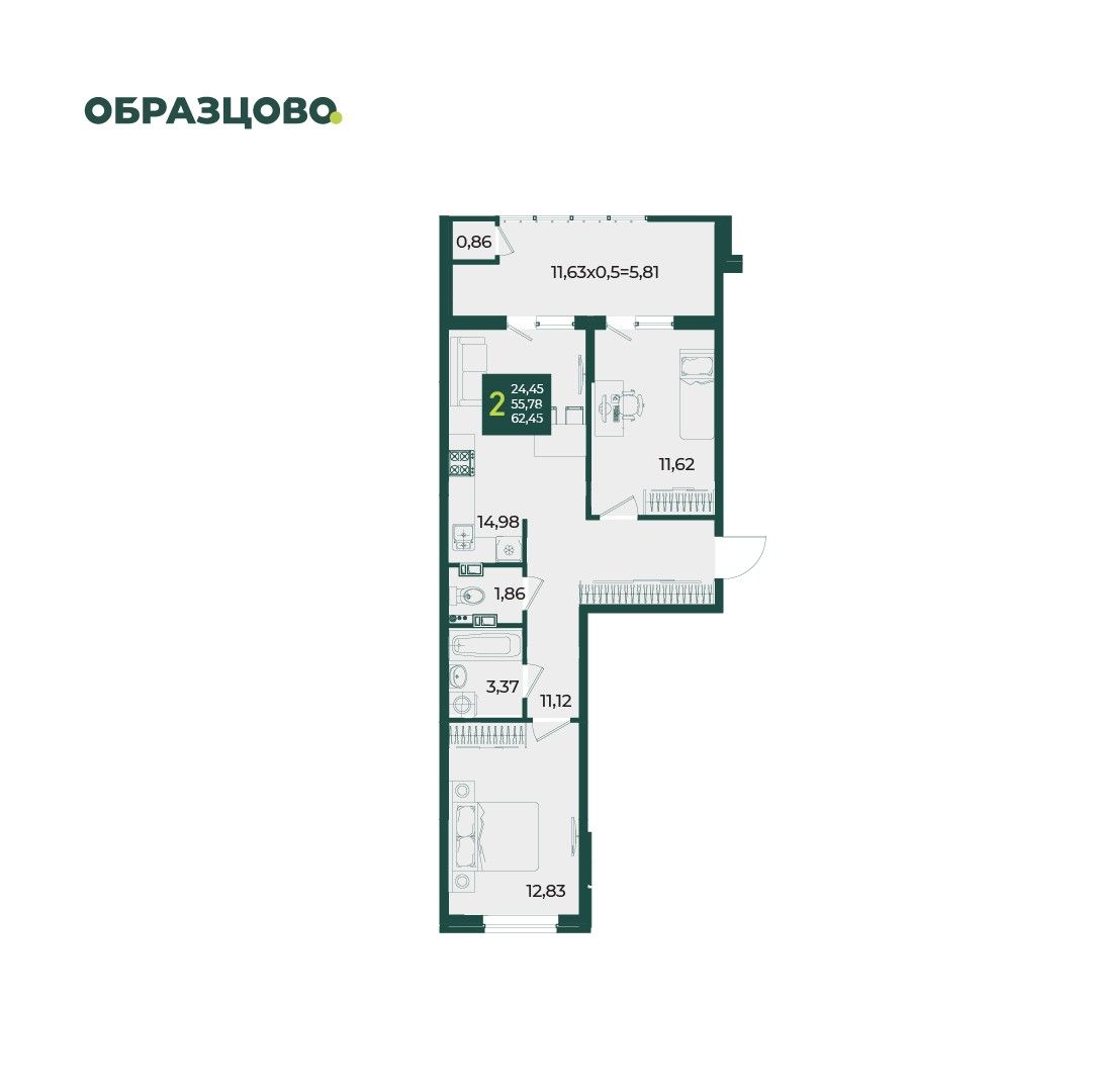 2-комнатная — 62,45 м² 8/18 эт. в Образцово