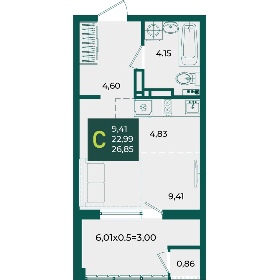 Общая площадь26,85 м²