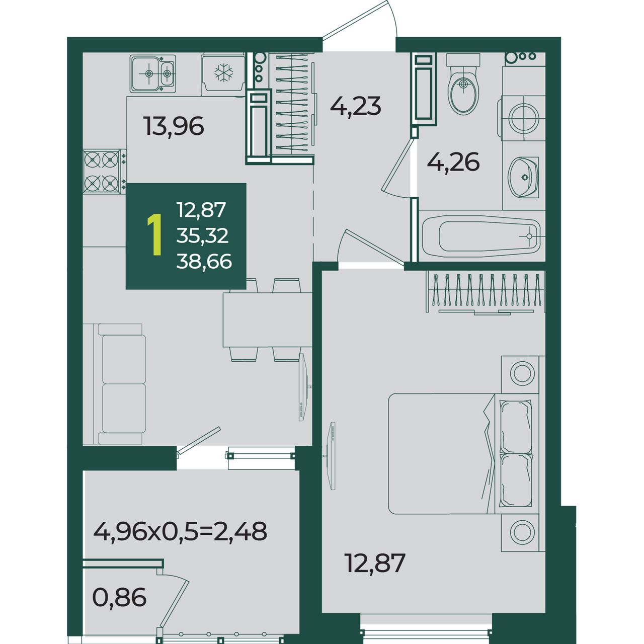 Общая площадь38,66 м²