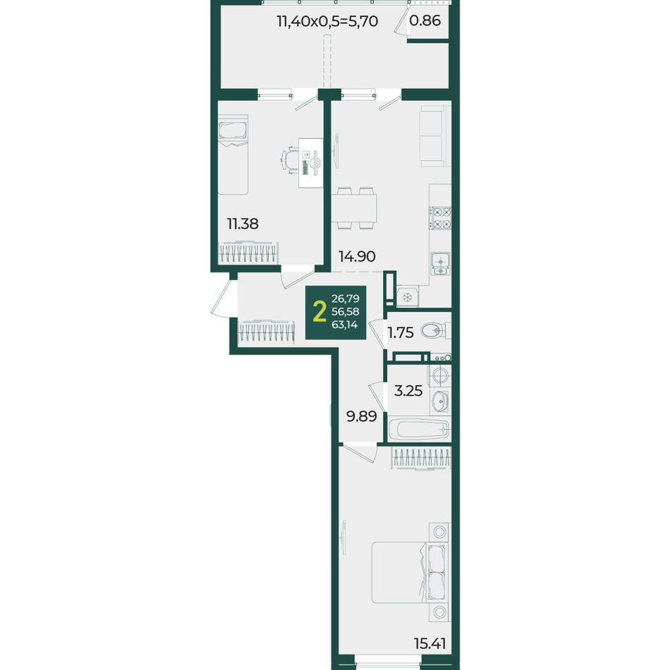 2-комнатная — 63,14 м² 13/18 эт. в Образцово