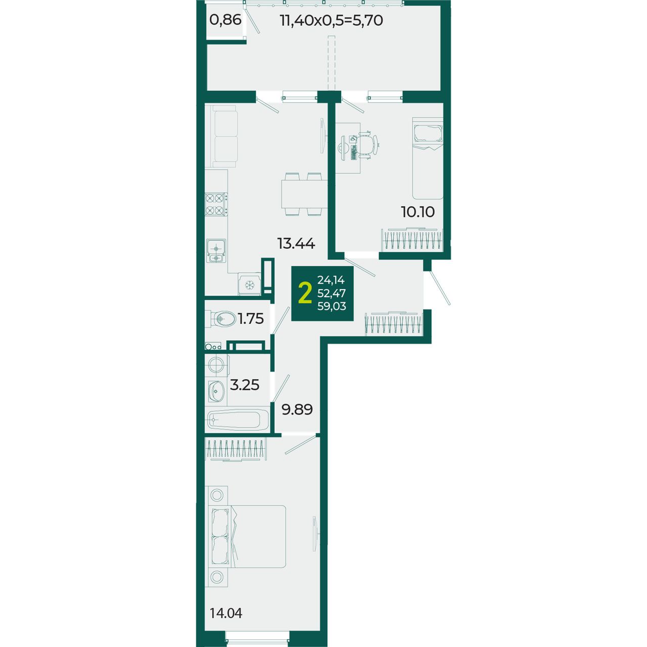 Общая площадь59,03 м²