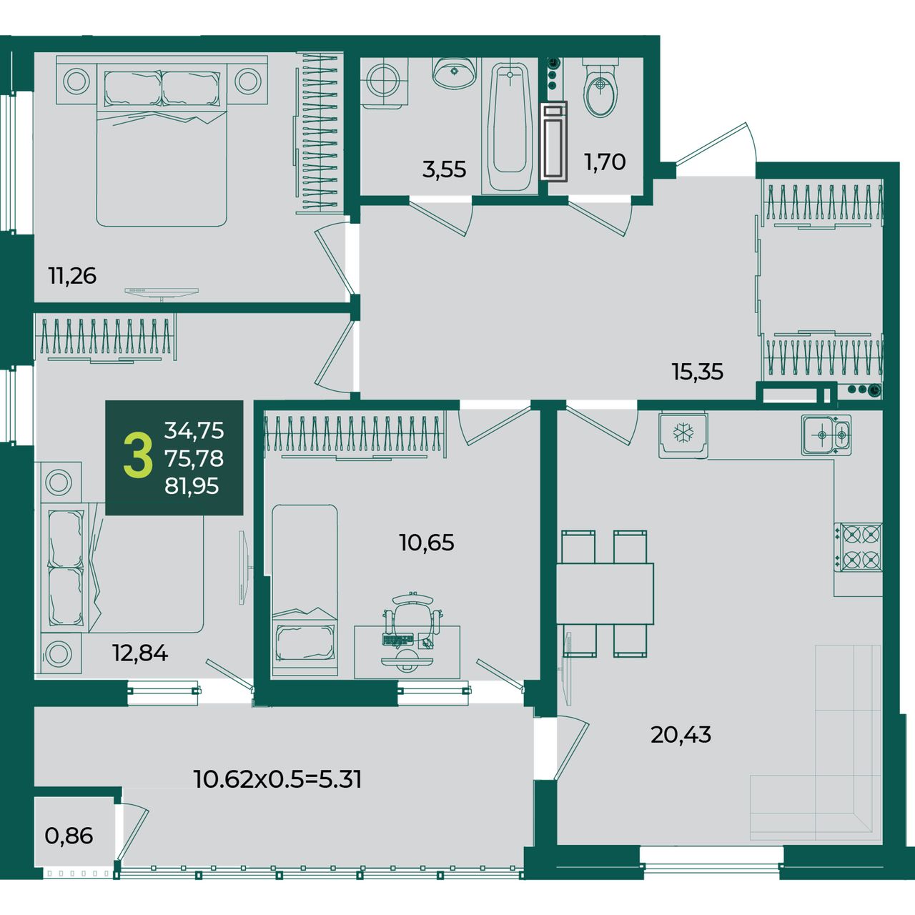 3-комнатная — 81,95 м² 12/18 эт. в Образцово