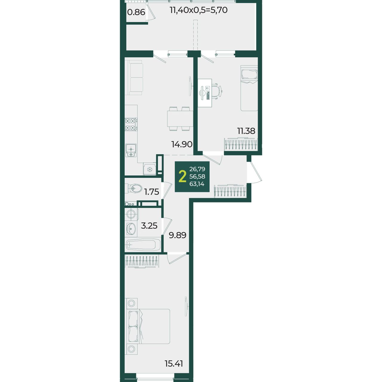 Общая площадь63,14 м²