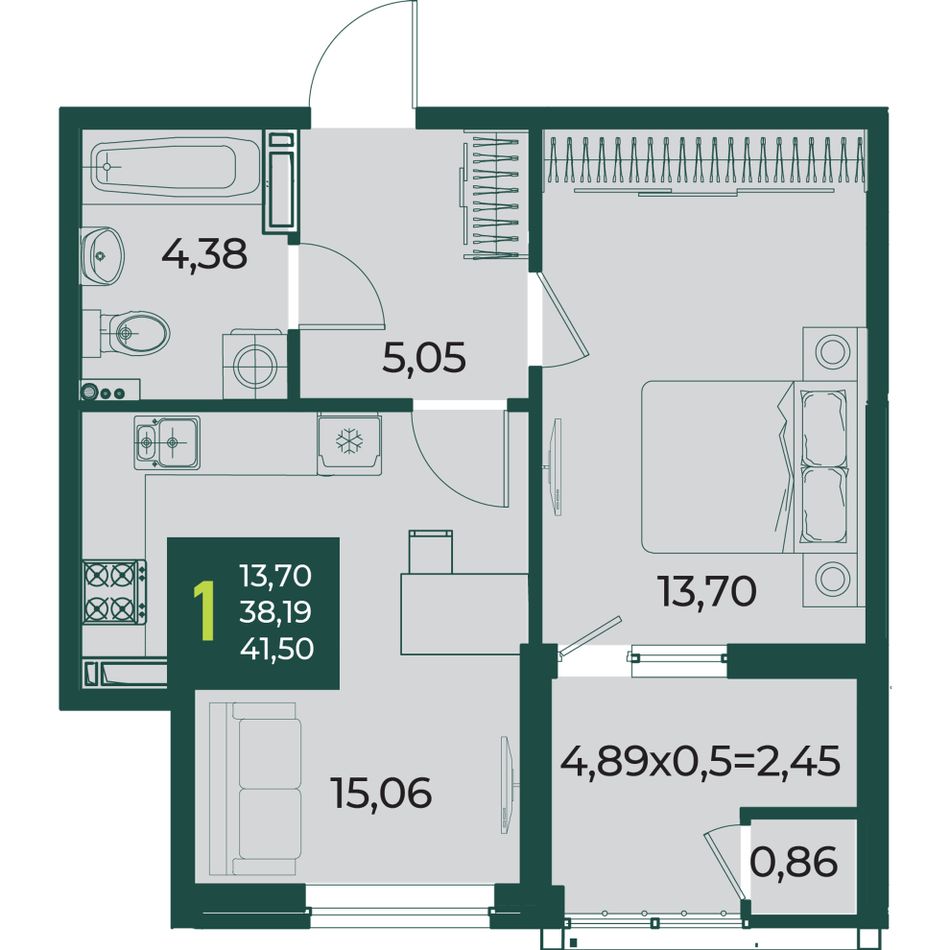 | 1-комн. | 37 - 42 м² | 5,7 - 6,3 млн ₽ |