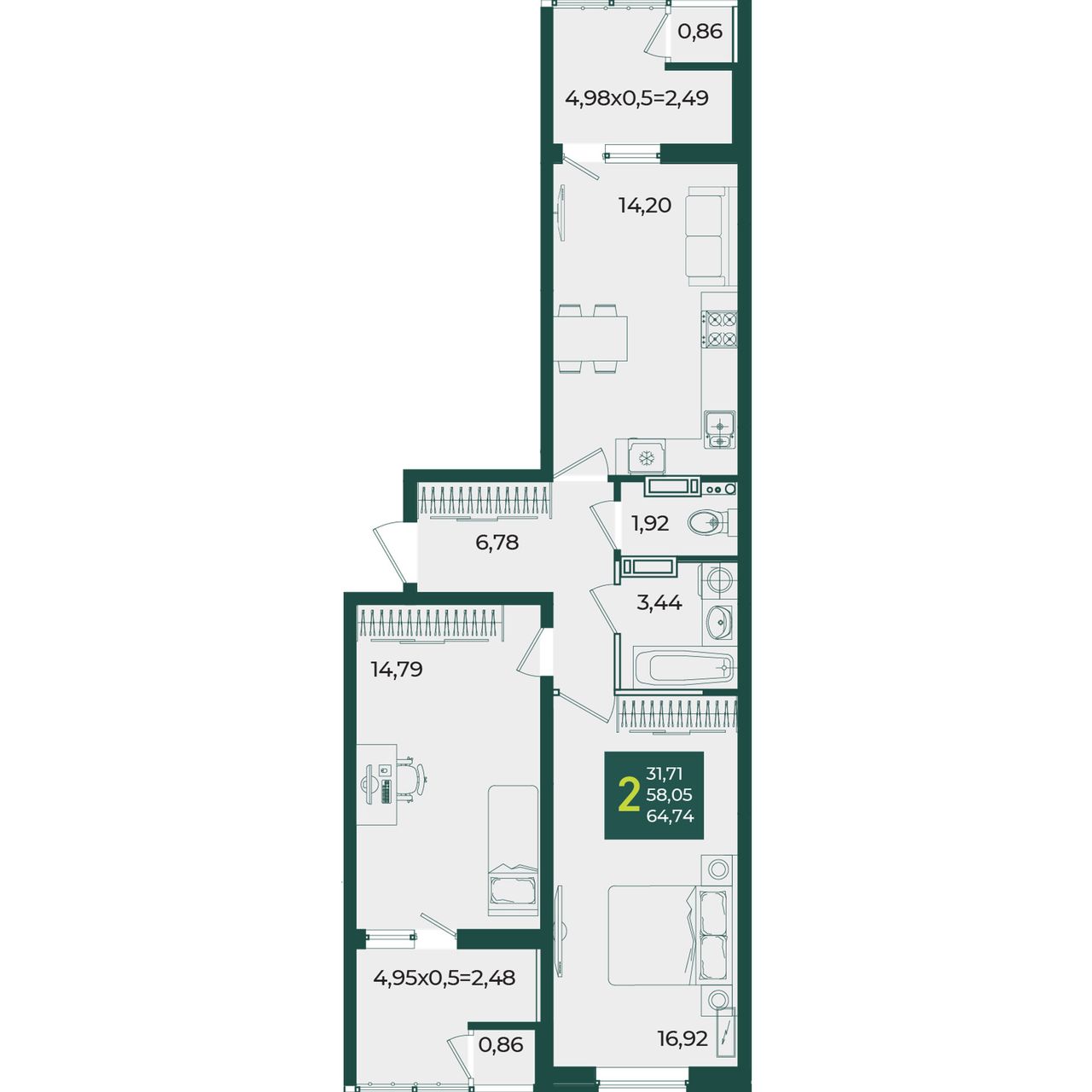2-комнатная — 64,74 м² 9/18 эт. в Образцово