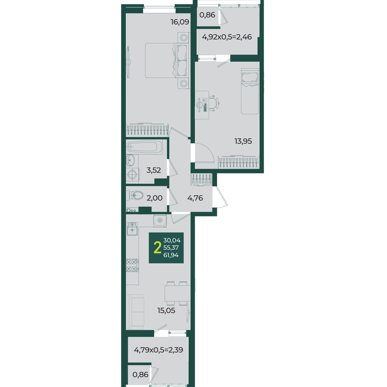 Общая площадь61,94 м²