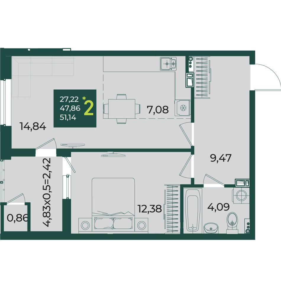 2-комнатная — 51,14 м² 8/18 эт. в Образцово