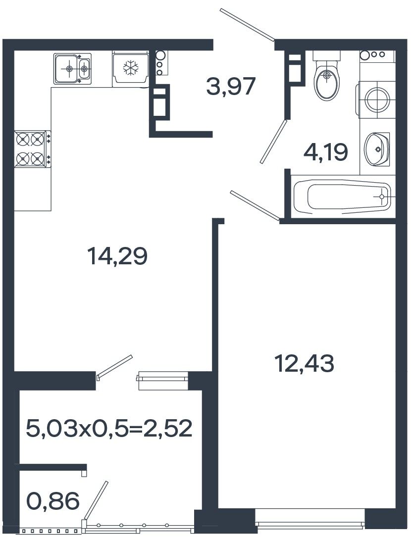 1-комн. | 35 - 43 м² | 4,9 - 5,9 млн ₽ |